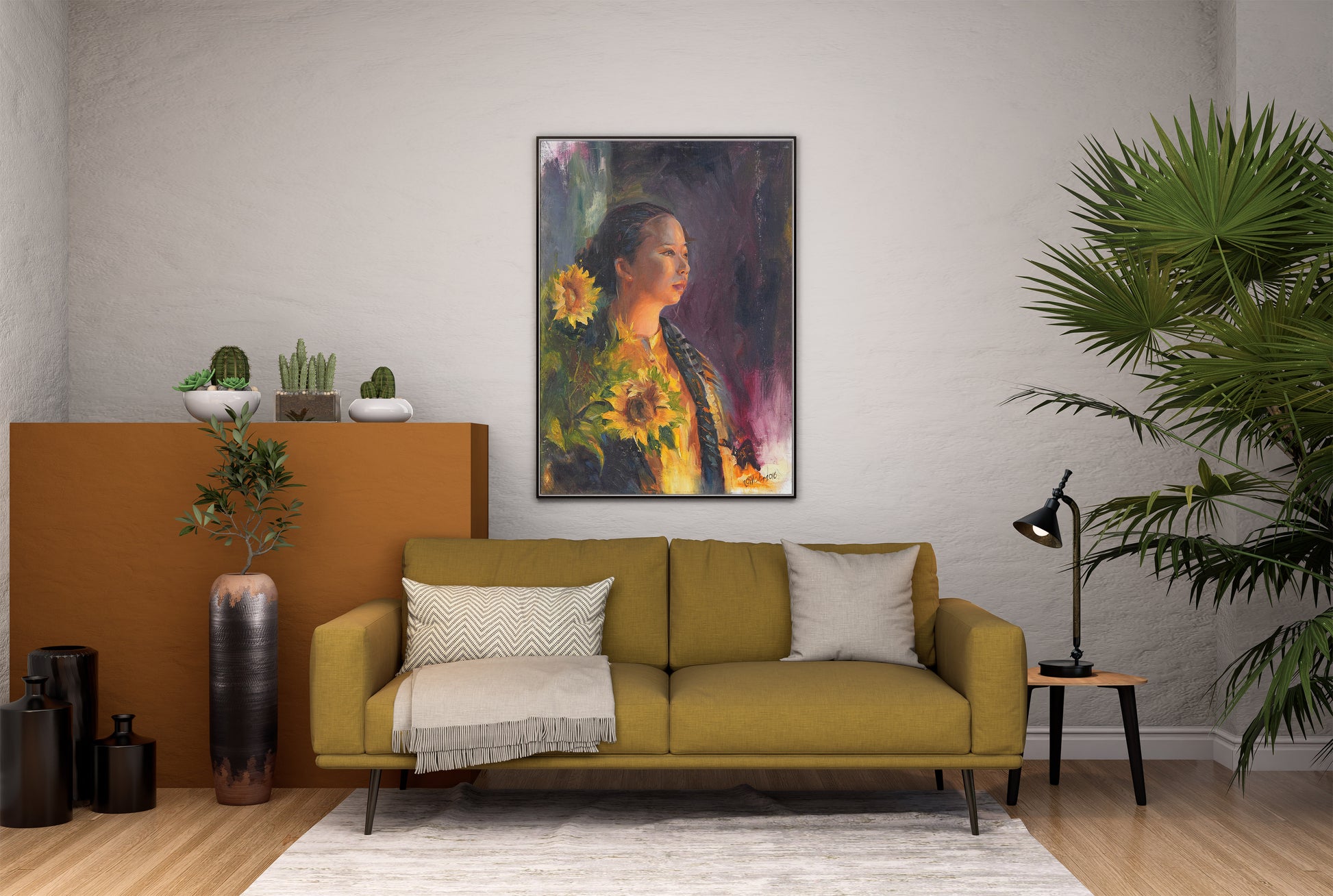 Artist Note / Inspiration: "Created live in Kent Island, this work captures a quiet harmony between the innocence of a girl and the delicate beauty of flowers."